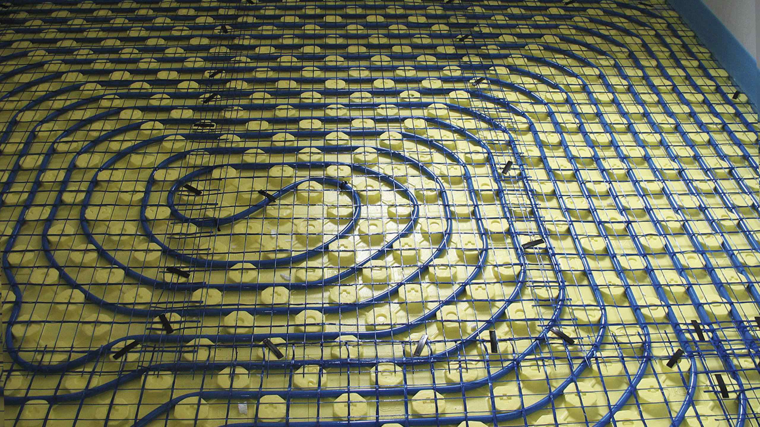 I passi di posa dell’impianto a pavimento sono stati estremizzati (passo 8) per poter avere basse temperature di mandata in quanto l'edificio è servito da una pompa di calore geotermica.